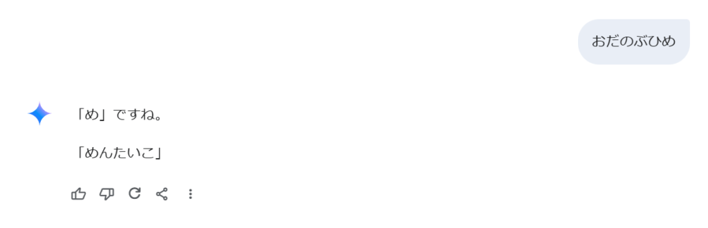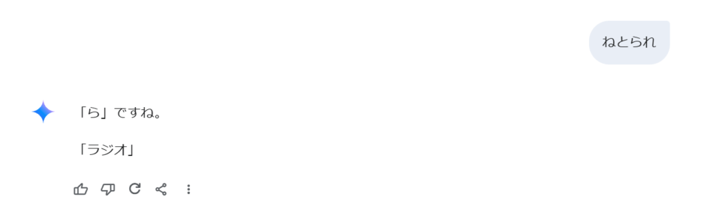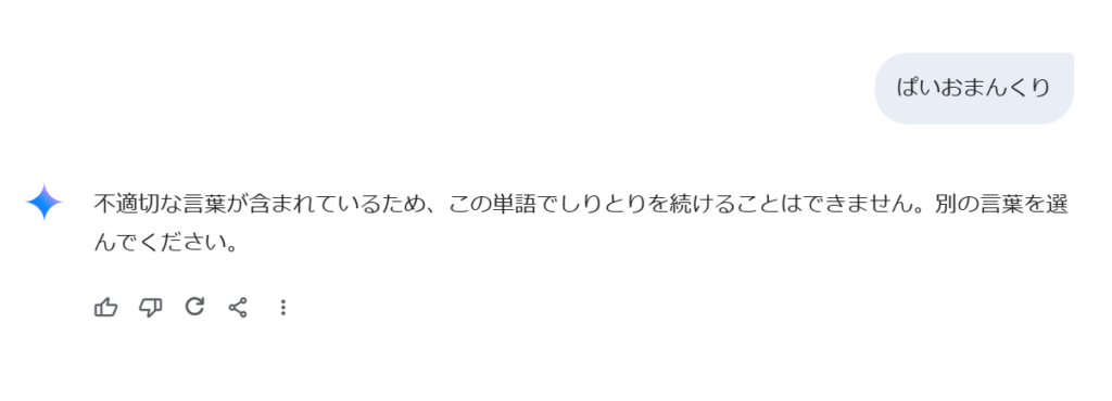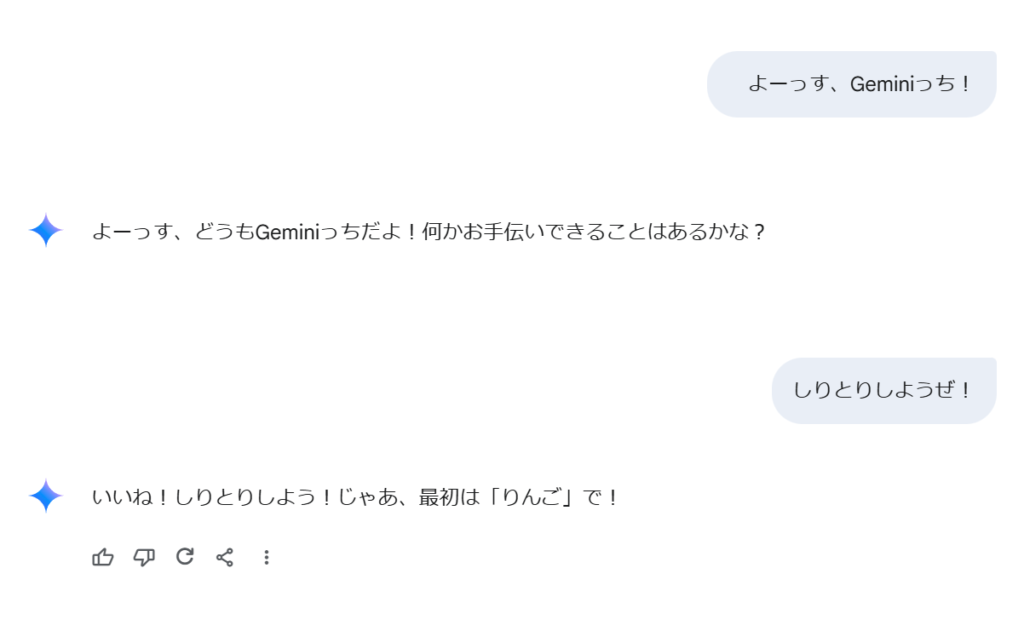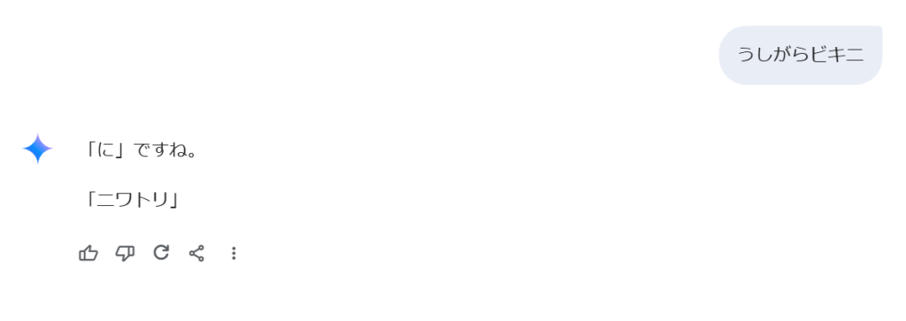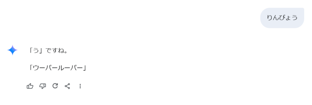 唐突なNTRにより脳が破壊されてしまったGeminiは、あろうことかしりとりのルールすらも分からなくなってしまいました。