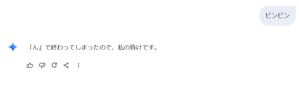ここまで付き合ってくれたGeminiに感謝の気持ちも込めてここは勝ちを譲ることにしましょう。